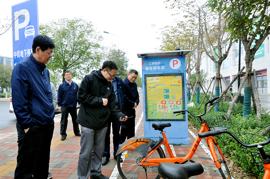 10月17日上午,为进一步规范我市互联网租赁自行车停放秩序,提升群众日常出行满足感、幸福感,保障我市市容环境整洁有序,由市道路交通管理运输局处长付向东、市政工程设计研究总院综合交通发展研究院副院长蒋寅、区城管委高海峰及其他相关领导组成的调研组赴东丽区军粮城,对我公司电子围栏试点项目运行进行实地调研考察。公司总经理姚广明、鲁志强陪同。