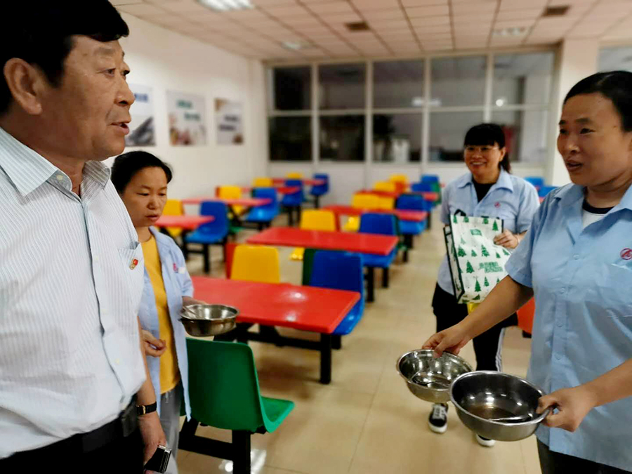 党的十八大以来,安达集团积极贯彻落实习近平重要指示精神,采取出台相关文件、推动开展“光盘行动”等措施,大力整饬浪费之风。今天中午,安达集团党委书记、董事长崔洪金亲自前往集团食堂,并就餐饮安全与杜绝餐饮浪费的落实情况进行视察。崔洪金对食品安全管理制度、食品进货渠道、餐饮设施的清洁和消毒情况及食品生产加工环节及食品留样记录情况进行了实地查看,他着重视察了职工用餐情况及杜绝餐饮浪费的落实情况,与职工交谈并听取了食堂负责人的汇报。