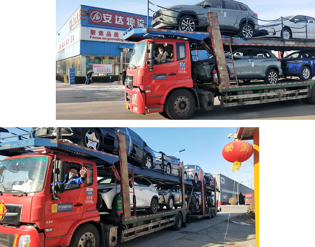 为保障春节假期各品牌车辆的正常销售,初四至初六三天时间,安达物流安排三十多辆运输车丰田、奔驰、长城等多个品牌商品车发运到西安、广东、江西、河南等地,共计300台商品车作为安达集团的支柱产业,安达物流再次创造开年佳绩