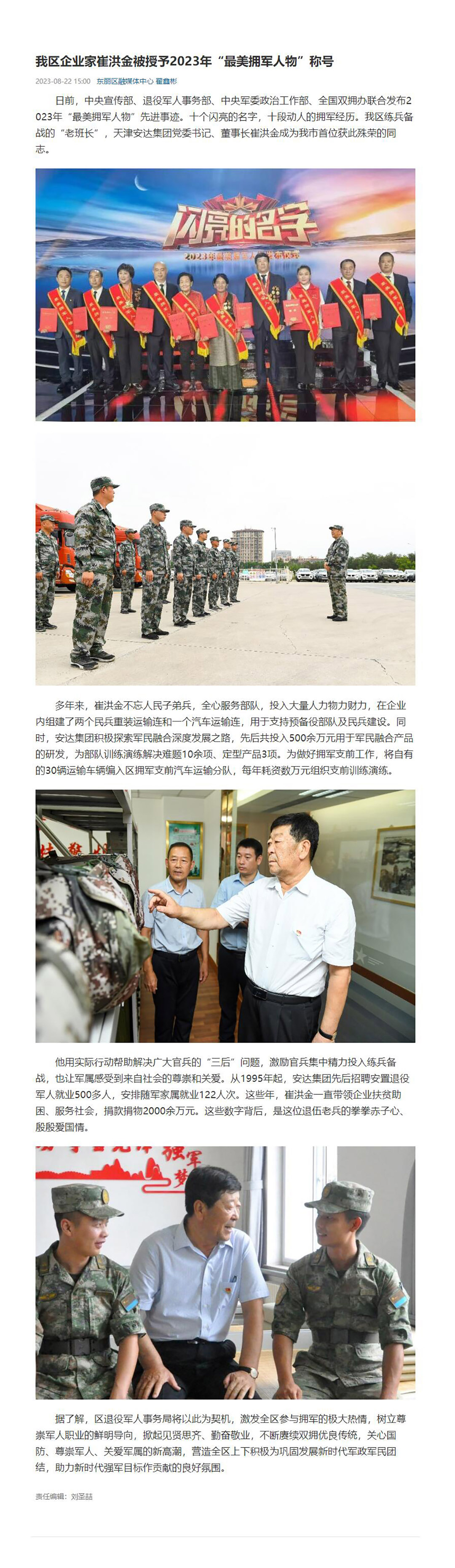> 崔洪金董事长被授予2023年“最美拥军人物称号”