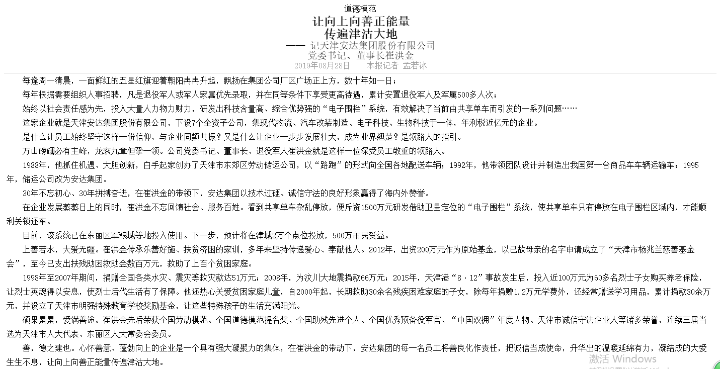 > 《天津日报》刊发 让向上向善正能量传遍津沽大地-记心博在线开户党委书记董事长崔洪金